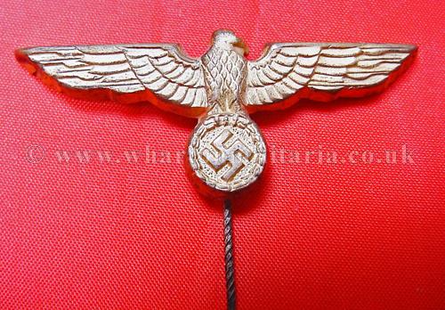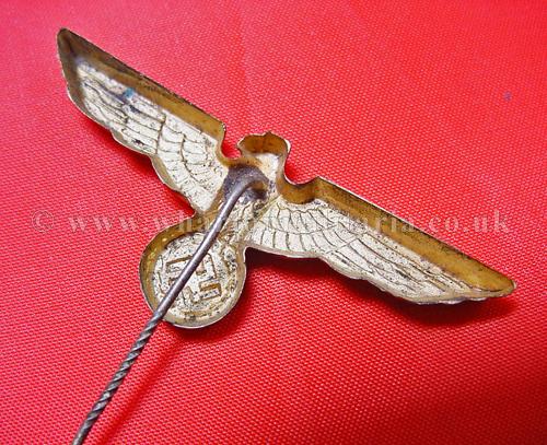 Kriegsmarine cap eagle on stick-pin for the ratings cap, excellent condition retaining full gilt finish including highlights, a very nice example of this cap eagle.