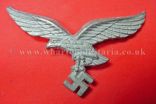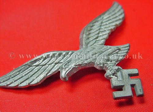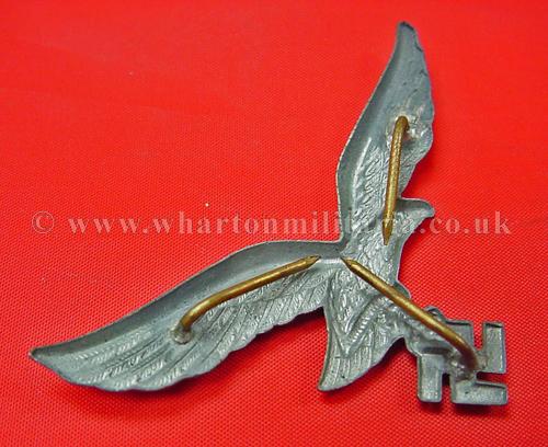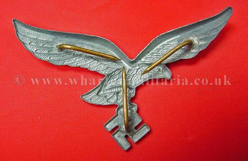 A scarce Luftwaffe tropical helmet eagle, in excellent condition, all pins intact, a not often seen eagle which is left facing.