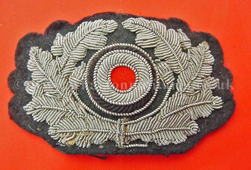 Army Officers cap cockade in silver embroidered wire, dark green backing for Panzer Grenadiers, paper backing intact, unworn, nice example
