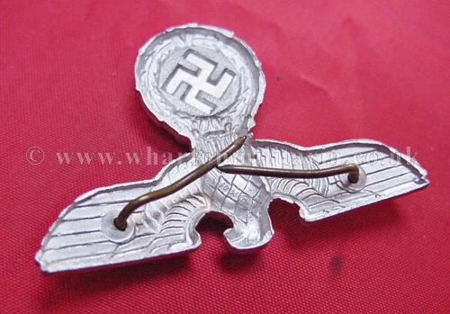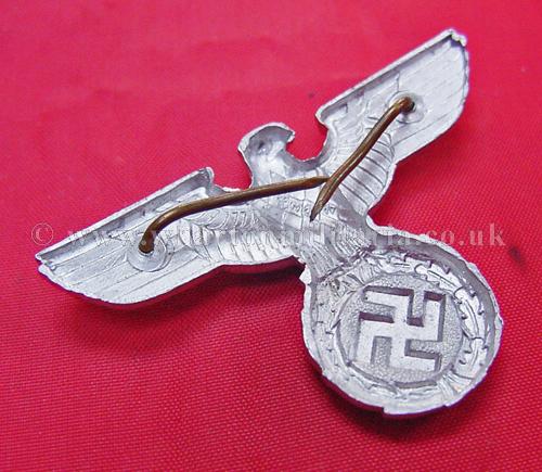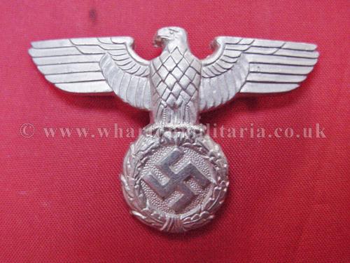 A very nice NSDAP Political cap eagle as worn by civil service officers, military attached personnel and a number of semi-military roles. A lovely eagle in excellent condition retaining all pins, 'RZM' and maker marked 'M1/17', a fine eagle.