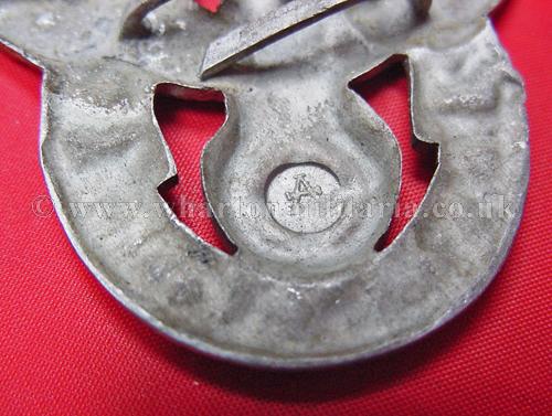 An Assmann sales card example of the Police Landwacht cap eagle in very good condition, retaining both pins, an interesting eagle for those who like variation eagles. Assmann cards had eagles made in plastic, pressed paper, resin and alloys.