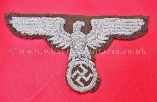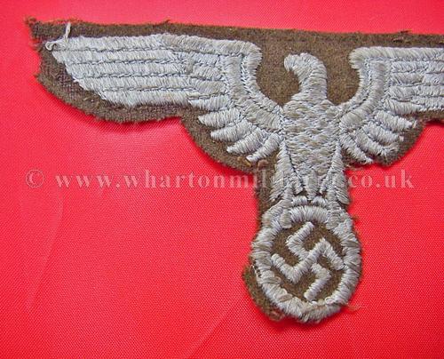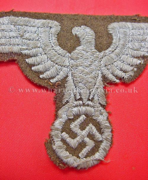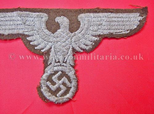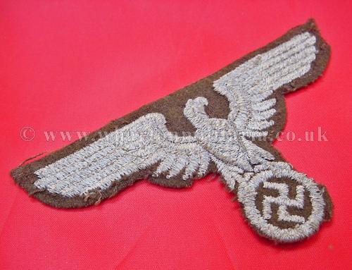 A rare NSDAP Eastern Peoples political cap eagle in good condition, these large woven eagles are very hard to find, not just because of the passage of time but many were destroyed as these areas were retaken in the latter days of the war, a rare eagle. Price reflects condition, a very good condition eagle would be three times the price.