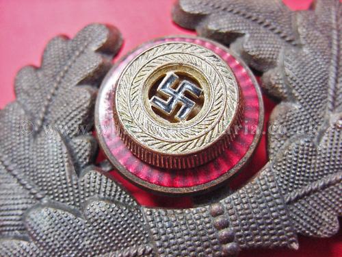 A scarce NSDAP Political Leaders cap cockade in excellent condition, nice patina, all pins intact, some minor corrosion on under side of the cockade tips, roundle RZM marked '34', no enamel damage at all, a good example of a party leaders cockade and hard to find these days