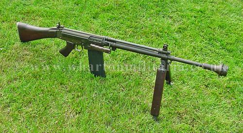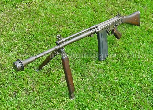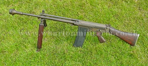 A very scarce British and Australian L2A1 self loading rifle, this iconic weapon was part of the 'SLR' family and essentially an L1A1 fitted with a much heavier barrel, selective fire capability, a folding bipod and housed a 30 round mag. The L2A1 was considered to be the replacement for the BAR. This example is nicely deactivated, old spec, and in beautiful mint condition with wooden furniture. It would be hard to find a better example, strips, cocks and dry fires. Approx 10,000 were manufactured through the 60s to 80s, this old spec deactivation is a Lithgow manufactured weapon with the serial number prefix of 'AD' matched to both upper and lower body and working parts. A very difficult weapon to find.