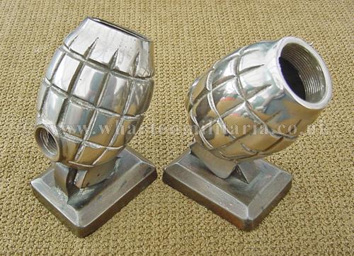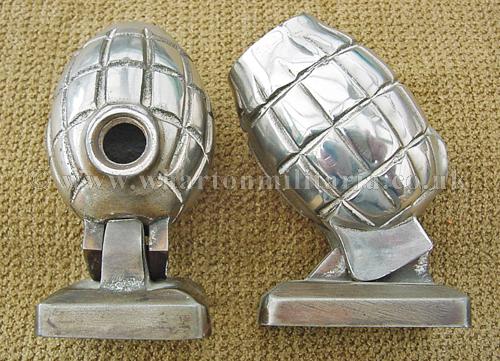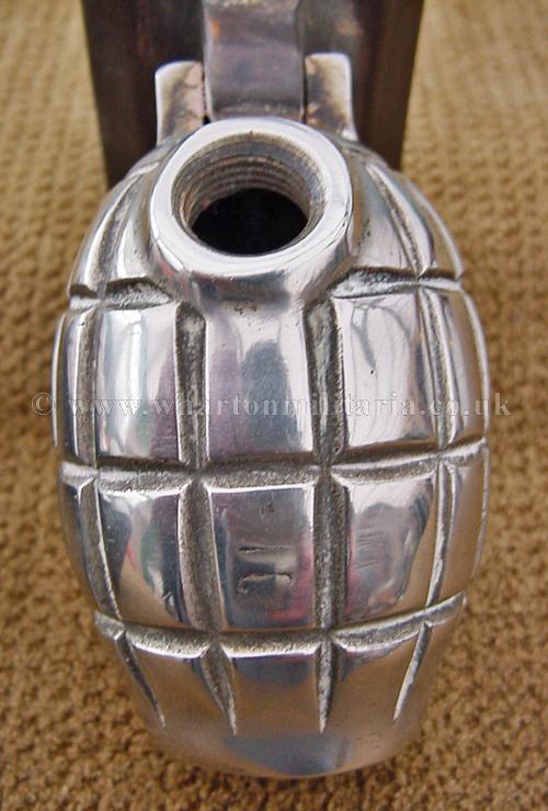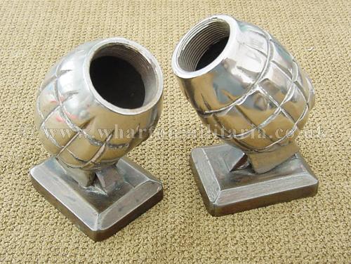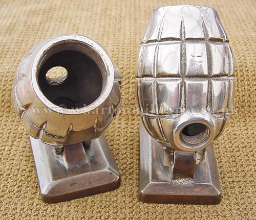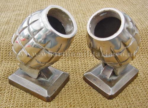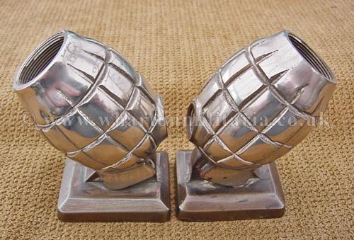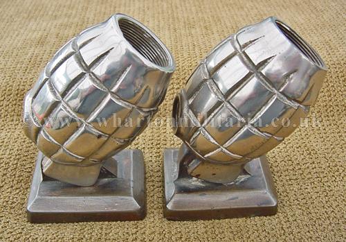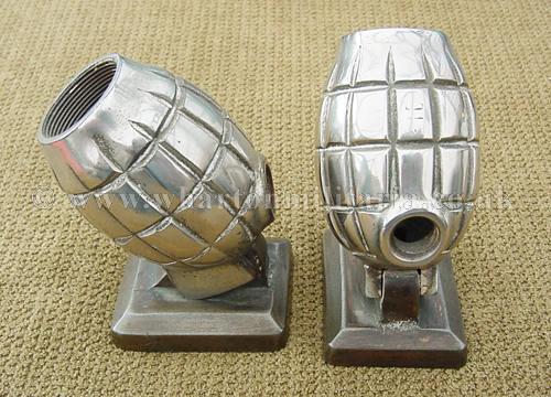 WW1 nickel plated Mills grenade casings in excellent condition. Original Mills grenade casings which have been factory nickel plated for presentation and mounted on to heavy stands. Grenade casings retain the full nickel finish and look impressive, not sure if they were used as they are or perhaps as bookends etc. Something different and not seen before.