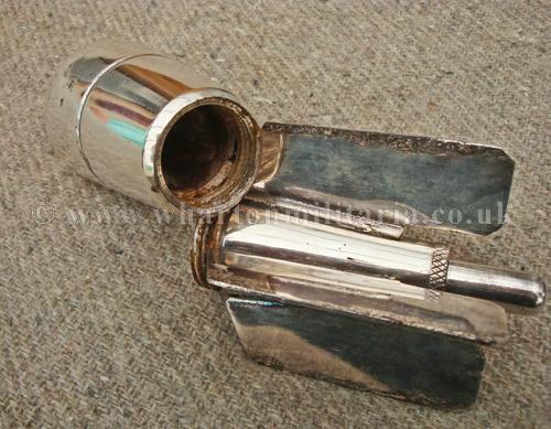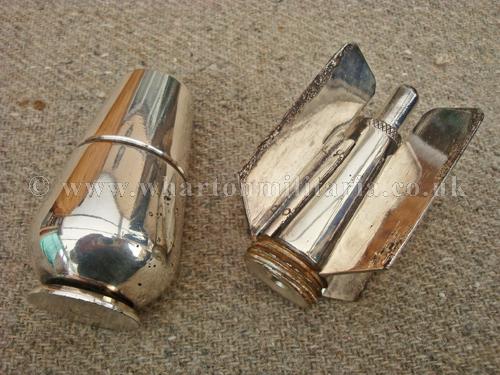 WW2 Mortar bomb made into a table/desk presentation piece, has been nicely chromed, comes apart into two pieces, really fine looking display item