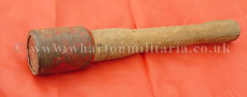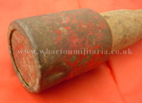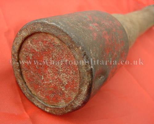 A scarce surviving WW2 German practice stick grenade, in excellent condition. During the German infantryman's skill at arms training practice grenades were used to teach the accuracy of the grenade throw and placement. The practice grenade is true to the functional grenades characteristics to ensure the best practice is achieved. These are collectors pieces in their own right and favoured by re-enactors and ordnance collectors alike. A fine and interesting collector's item and hard to find in any condition.