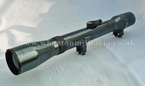 An excellent condition WW1 into WW2 German issued military sniper scope made by Dr W Gerard, Charlottenburg, scope is serial numbered and marked 'C' along with the DRGM stamp, has a tube diameter of 26mm (approx 1 inch). Excellent overall condition with clear optics and aiming mark, see images. Complete with its original quick release mounts for the K98. Many such scopes were used by the German military in both world wars and in particular the SS during WW2. A clean sniper scope with excellent clear optics brought back by a serviceman.