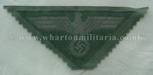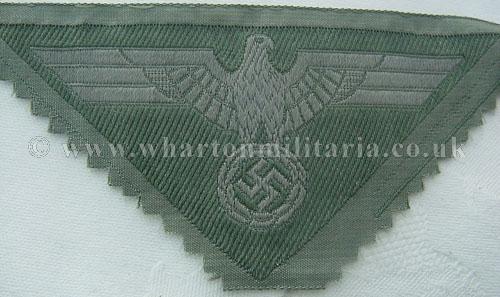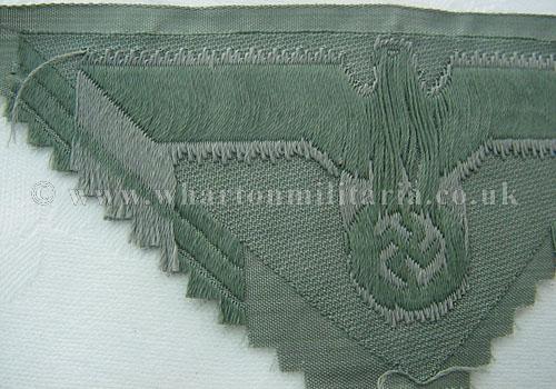 Army M44 bevo breast eagle, grey on green, un-issued example on full backing