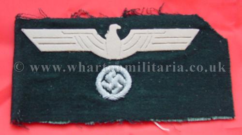 Really scarce and unusual surviving unfinished panzer breast eagles - the roundle and swastika have been completed but for whatever reason the bodies were never completed, excellent examples for the eagle collector as it clearly shows how the body template was used to guide the tailor/artisan who hand made the eagles. Lovely variant pieces for the more discerning collector, choice of 2, price each