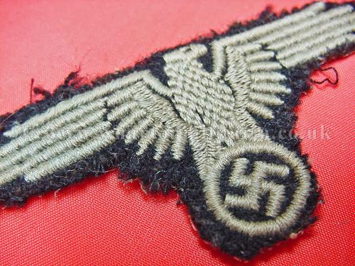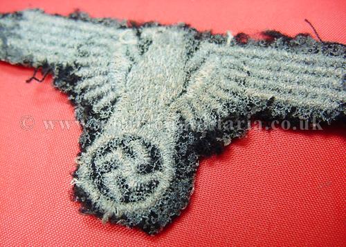 Waffen-SS other ranks and NCOs arm eagle in good condition, off uniform showing signs of wear, machine embroidered white on black wool base