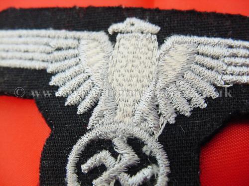 Waffen-SS other ranks and NCOs arm eagle in unworn condition, machine embroidered white on black wool base, an excellent example.