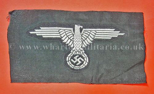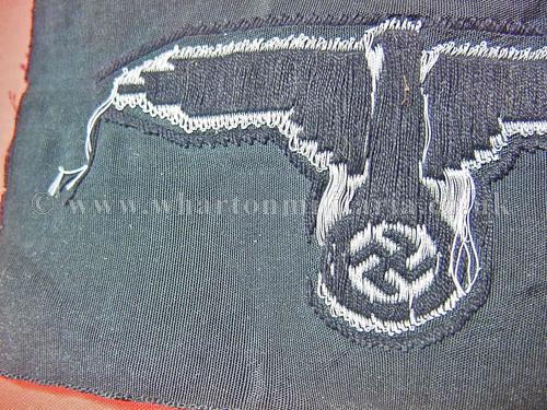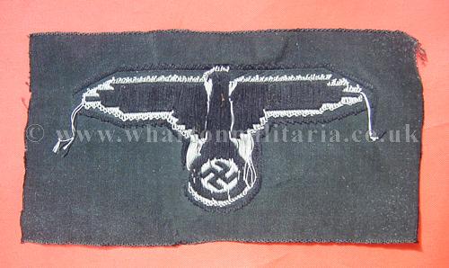Waffen-SS NCO arm eagle in excellent unworn condition, bevo embroidered silver wire on black backing, these are getting harder to find now.