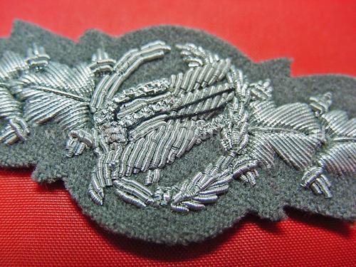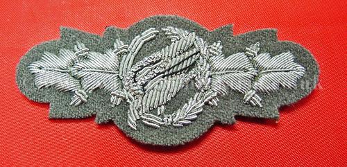 1957 Paratroopers Combat Clasp, cloth version for sowing to tunic, this badge was basically the de-nazified version of the WW2 clasp which was never implemented. This clasp itself was only worn during the 1955-56 period and became obsolete when the formal 57 issue State awards were introduced. Some senior parachute officers continued to wear the clasp, photographs exist of the clasp being worn as late as 1960. A scarce and difficult badge to find.