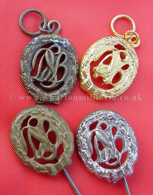 Stickpin 1957 16mm - German Sports Badge 'Deutsches Sportabzeichen' - Bronze and Gold in medalbar miniature format and Bronze and Silver in stickpins, all maker marked 'Steinhaur & Luck', price each £20.00