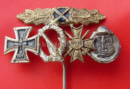 Stickpin 1957 8mm - Group of 5, Close Combat Clasp in Bronze, Iron Cross 1st Class, Infantry Assault, War Merit with Swords and the Eastern Front Medal.