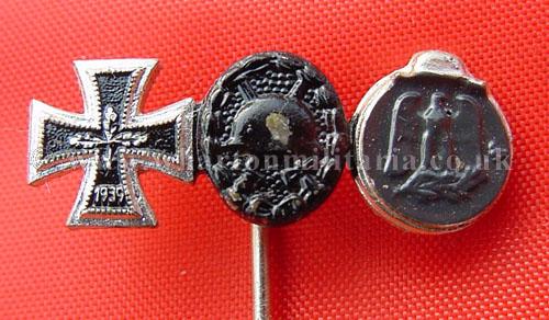 Stickpin 1957 8mm - Group of 3, Iron Cross 2nd Class, Black Wound Badge and Eastern Front Medal