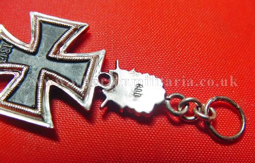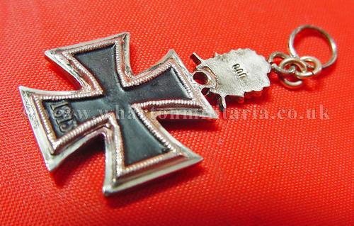 A scarce 1957 Knights Cross of the Iron Cross, Oakleaves, Swords and Diamonds miniature for the formal ribbon bar, very well made, fine detail, stamped '800' silver on the rear of the Oakleaves, size approx 40mm from base of KC to top of ring and 18mm wide across KC, official miniatures are not often seen, a nice set to the top end of the Knights Cross hierarchy.