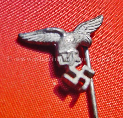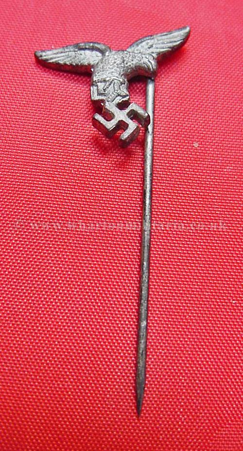 An early Luftwaffe droop tail lapel eagle in excellent condition, retaining almost all of its silver grey finish, approx size 18mm wingspan, a scarce early Luftwaffe stickpin