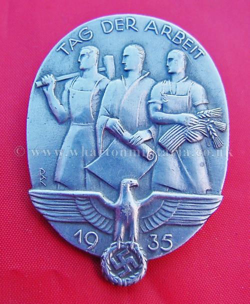 Day badge, Tag Der Arbeit 1935, maker ASSMANN u. SOHNE, LUDENSCHIED, excellent condition
