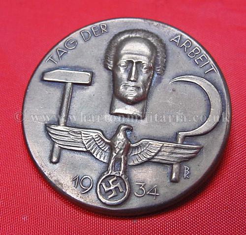 Day badge, Tag Der Arbeit 1934, excellent condition, maker marked 'Ziemer & Sohne, Oberstein' - not often found with maker marks
