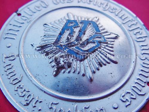 A RLB Members ID Door Plate for Sachfen in extremely nice condition, approx 70mm diameter, maker F W Assmann & Sohne, still retaining the blue coloured RLB letters. Door plates are getting scarce especially in such fine condition.