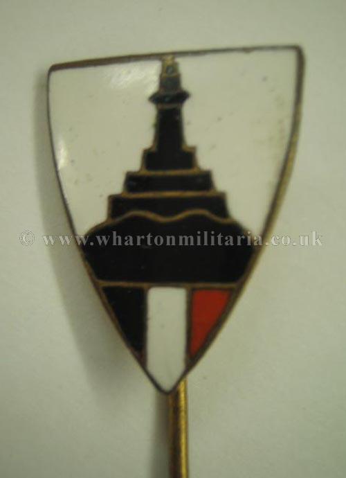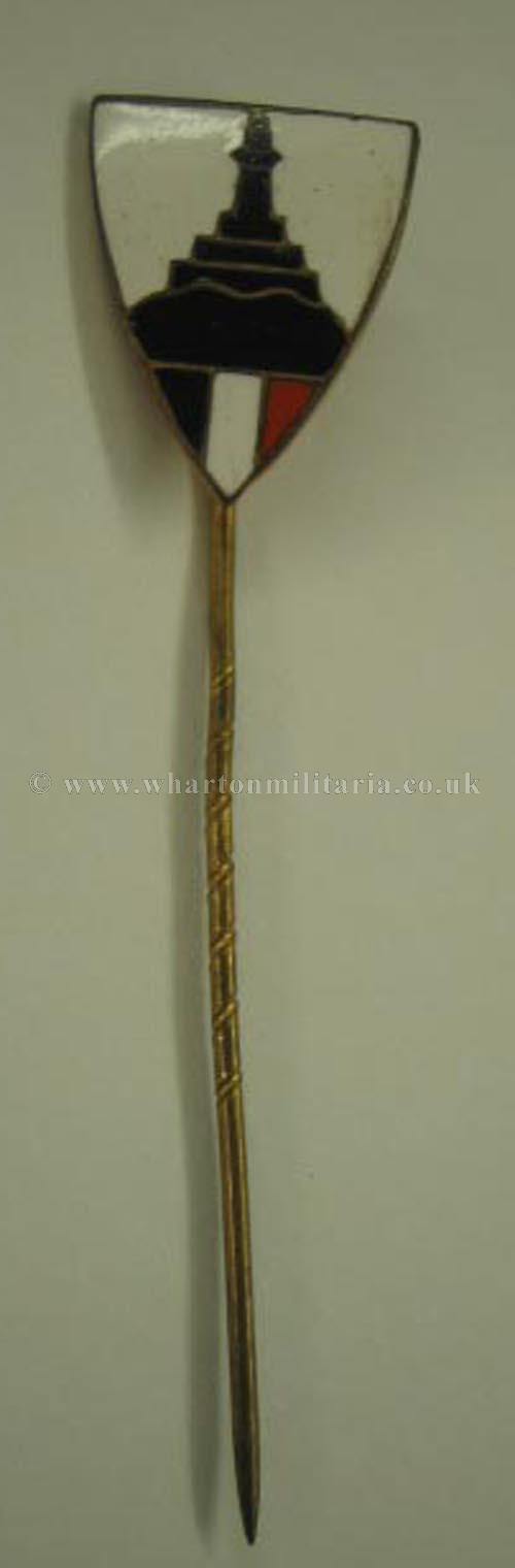 Stickpin - Old Comrades Assoc - Membership badge - black tower over Iron Cross & black/white/red