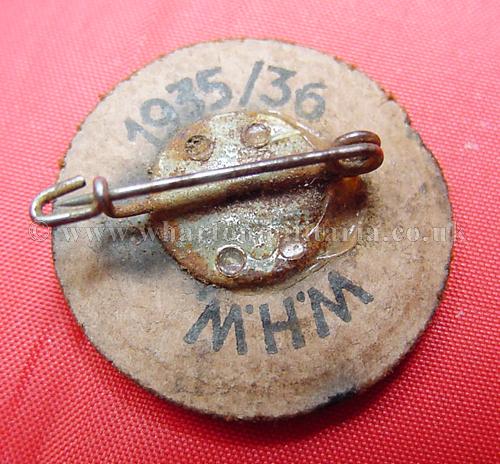 WHW Wolfsangel or Wolf Hook Rune Badge 1935/36, in unworn condition, marked 'WHW 1935/36' on the back, found in various colours, nice day badge/tinnie especially in this condition