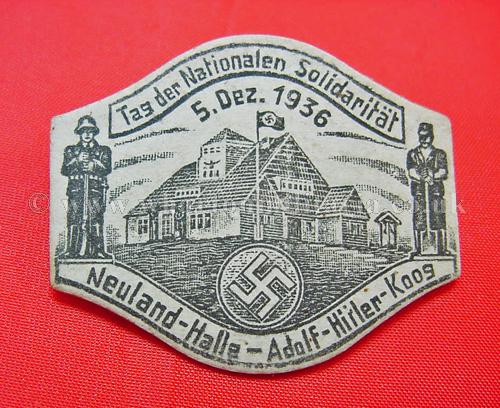Day Badge - Tag der Nationalen Solidaritat, 5 Dec. 1936, in excellent condition, these card day badges are extremely scarce as they rarely survive the passage of time, a nice find.