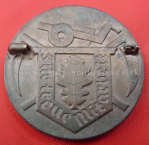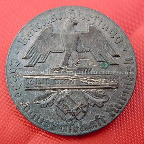 Day badge - Reichsnahrftand Landesbauernfrhaft Kurmark ~ badge for the contract farming association 'Blut und Boden' , lovely bronze iconic badge, sadly the pin was removed to be fittind inside a photo album, scratching to the front but generally a nice scarce badge. Not a common badge, price reflects missing pin and scratch to the front.