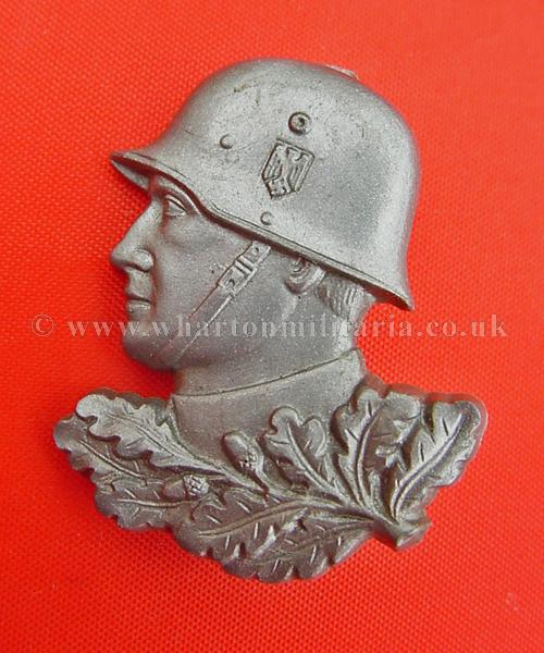 Day badge - Army Day, head and shoulders of a helmeted soldier over oak leaves, helmet has the Wehrmacht eagle, approx 42x25 mm in size, in unworn condition, pin fitting intact, lovely iconic badge
