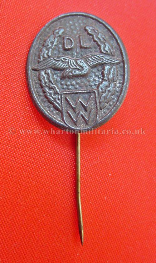 A DLV Luftfahrbetriebe flying members badge, flying eagle, retaining almost all its finish, stick pin fitting, an early civil aviators badge.