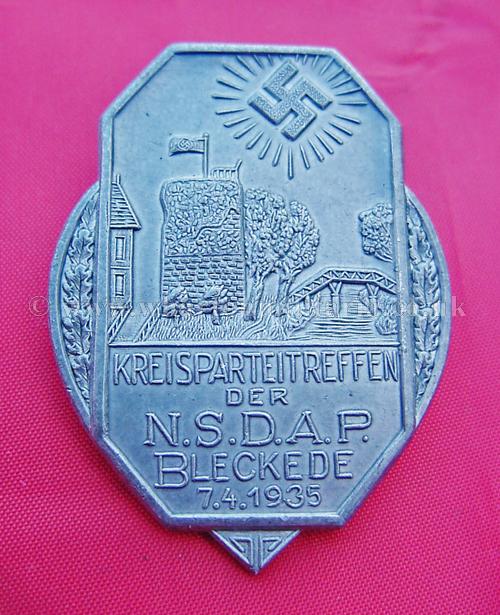 Day Badge - Kreisparteitreffen der NSDAP Bleckede 7th April 1935, in excellent unworn condition, maker marked 'Assman & Sohne, Ludenscheid' , a very nice daybadge