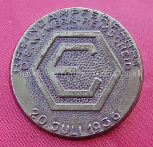 Day Badge - Rheindampferfahrt D.E.W Werk-Remscheid 20.Juli.1936 - related to a manufacturing company contracted to the Kreigsmarine - badge in excellent condition