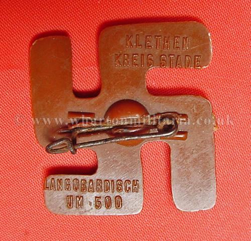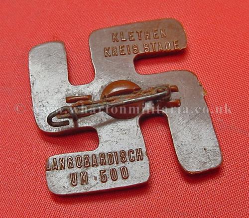 Day Badge - Klethen Kreis Stade, in excellent condition, retaining its pin, WHW related, shows runic / Norse design