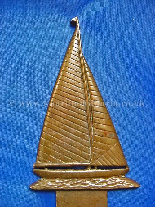 Vintage car badge of a sailing yacht, circ 1930s, in excellent condition, approx size 135x60 mm, appears to be bronze, quite heavy, 5mm thick, interesting old car badge.