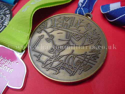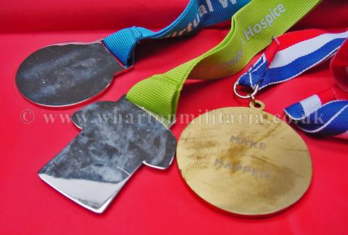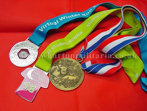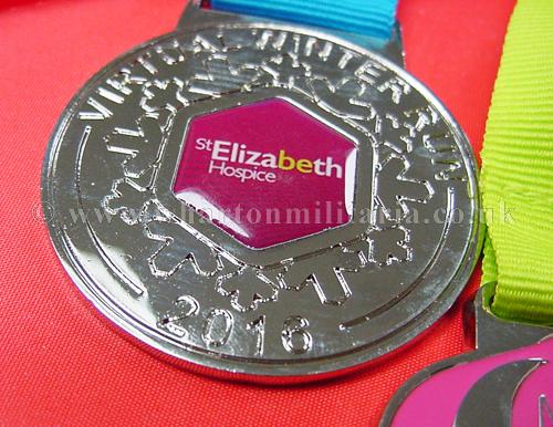 3 medals with ribbons, St. Elizabeth Hospice Midnight Walk 2018, Virtual Winter Run 2016 and a 'goals' medal, all in as awarded condition