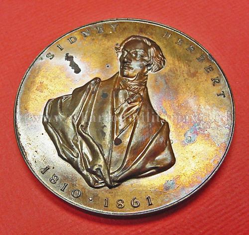 A very scarce Royal Army Medical Colleges prize medallion - Sidney Herbert 'First in Order of Merit' prize medal, the Right Honourable Sidney Herbert, later Lord Herbert of Lea, was the founder of the Royal Army Medical College. The medallion, awarded in Herbert's memory to honour the highest standard of achievement, is in excellent condition, approx 5cm diameter and 5mm thick, lovely heavy quality, a really fine looking item certainly worthy of more research especially with the Royal Army Medical College connection
