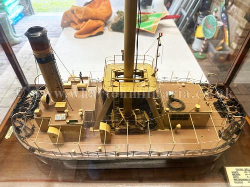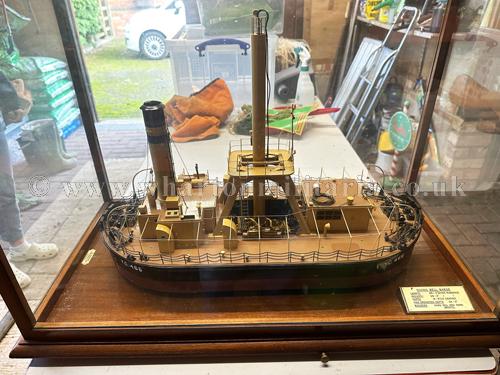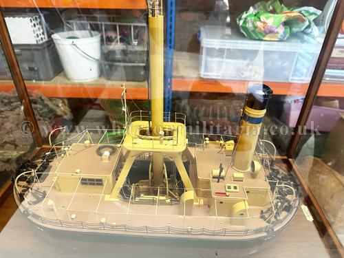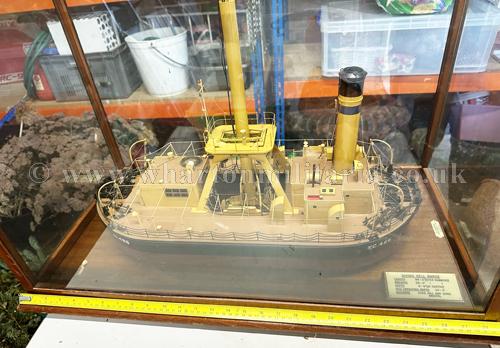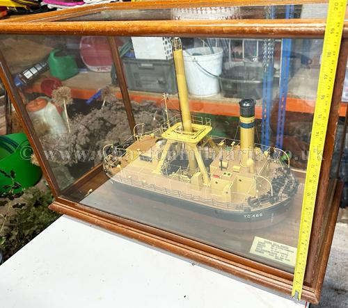 Professional Boardroom Model - Diving Bell Barge built by Chas. Hill and Sons, Bristol and modelled by the Sunderland Model Making Company, this highly detailed model by one of the major boardroom model ship builders is mounted in a glazed case with maker's and specification plates, approx size is 28 x 15 inches with a height of 19 inches, a stunning and sought after collectable.