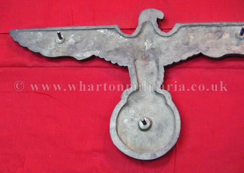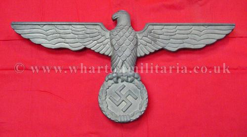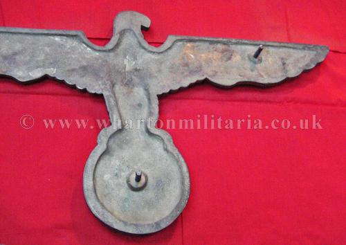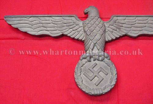 A rare German Wehrmacht building wall eagle in excellent condition retaining its mounting bolts, very heavy possibly bronze, wingspan is approx 72 cm wide, an early eagle with the eagle's head facing left in the pre-war manner, an ex-Niemann sale complete with his CoA.