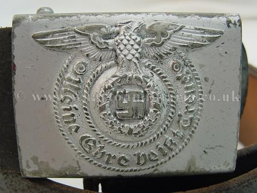An almost unworn SS enlisted soldiers belt and buckle, buckle retains almost all of its silver finish, nicely maker marked 155/43 along with the RZM and SS circular stamps. Belt is slightly dry though this does not detract, is marked 'L.G.M. and dated 1940, length marked as 110. A fine example for the descerning collector.