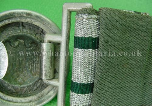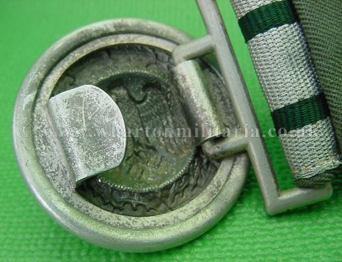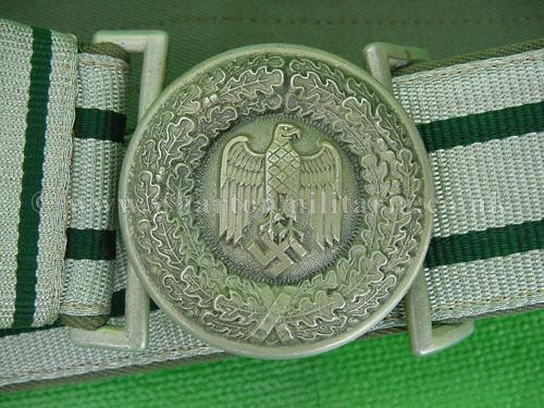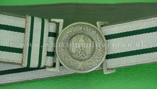 An early WW2 German Army Officer's belt & buckle. A stunning example that has been well looked after since the end of the war, absolutely excellent condition. An increasingly difficult belt to find in such condition, still retaining the metal belt size tab clip.