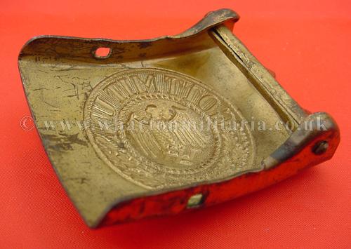 A scarce Kriegsmarine belt with the 'Guard Service' varient belt buckle in excellent condition, buckle is crisp of detail with minimal signs of wear, retaining 90% plus of the gilt finish. Maker marked 'CDT 42'. A very scarce belt buckle in this condition, especially retaining its original issue leather belt. Belt has the black outer and light brown inner face, belt is size marked '95' and maker marked 'Ct' - at the hook end belt is also numbered. Guard Service buckles are extremely rare as they were not on general issue being issued only to those men and senior NCOs undertaking Guard Service Duty. Additional image shows the catchment bar and position, sadly the bar has been lost from this buckle. A local veteran bring back.