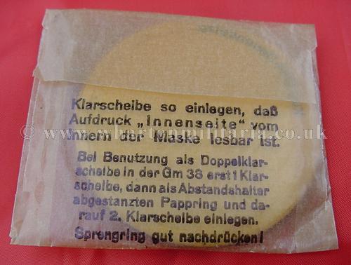 WW2 German Gas Mask replacement Lens in original packet dated 1944