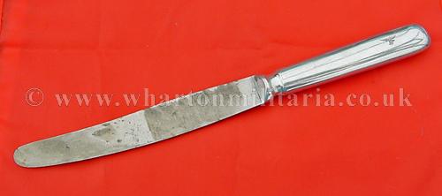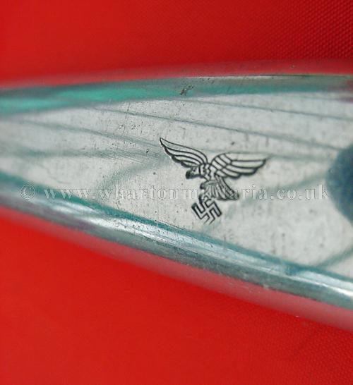 Luftwaffe table knife, approx. 24cm in length, stamped with the Luftwaffe eagle that faces left rather than right - associated with the Hermann Goring Division, aluminium handle with stainless steel blade, a heavy good quality table knife.