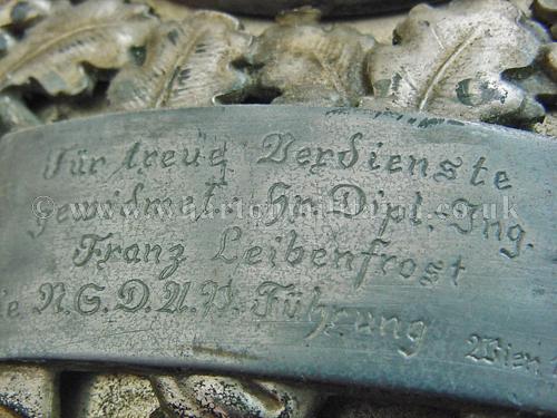 NSDAP Party Presentation Plaque to a Diplomat, Vienna 1940