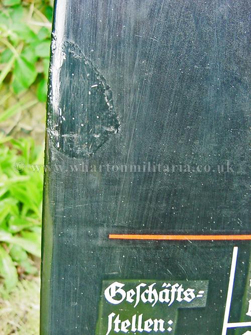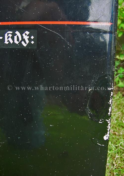 A scarce large enamel communication shield of the WW2 German NSDAP, with it's legend `Here speaks the NSDAP National Socialist German Arbeiterpartei` in absolutely excellent condition. Black enamel sign with red and white lettering on the panel, covers the offices of the NSDAP (SA, SS, NSKK, HJ, etc) as well as DAF, KDF and the NSA, all information related to those offices were published along with their business hours, plus any notification for releases of the NSDAP, NSV and the DAF-KDF publications, newspapers and leaflets. In excellent condition, a couple of slight bumps in the corners with signs of touching up of minor enamel chips, size 80 cm x 65 cm, very rare in this fine condition, rarely found Nazi enamel sign, very iconic and a good centre piece for a collection.