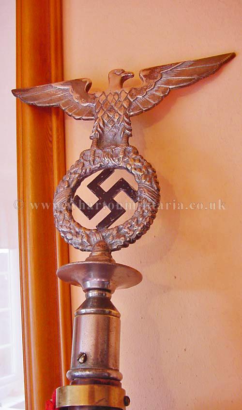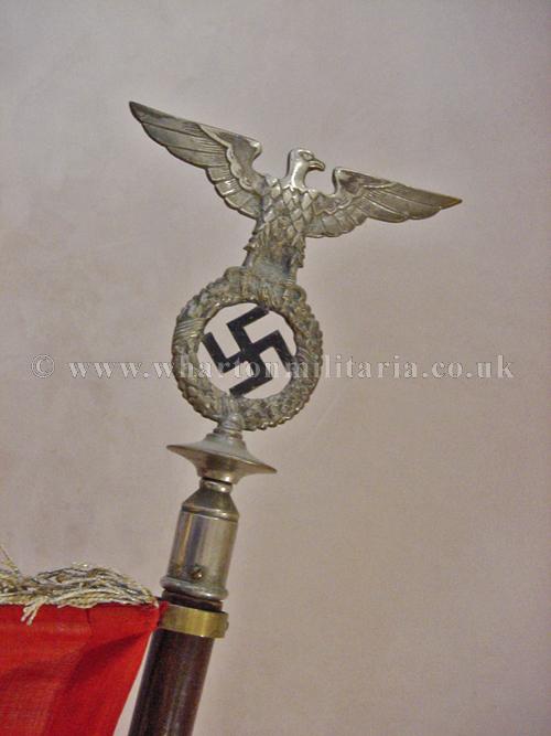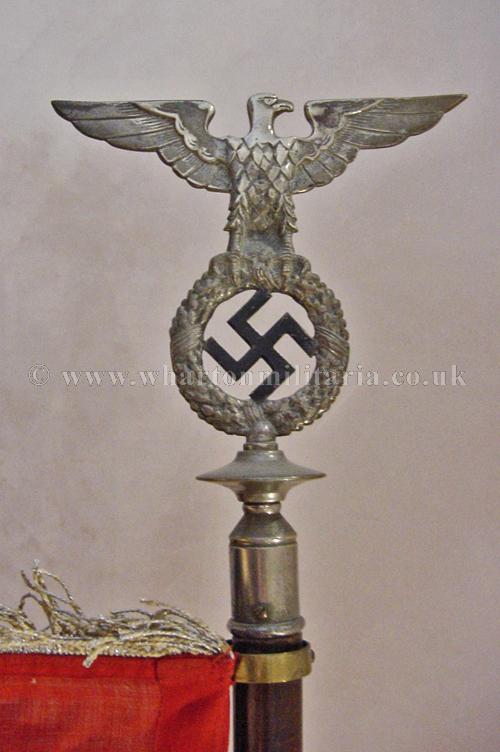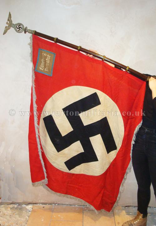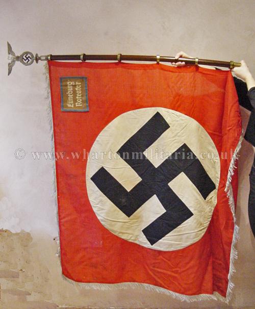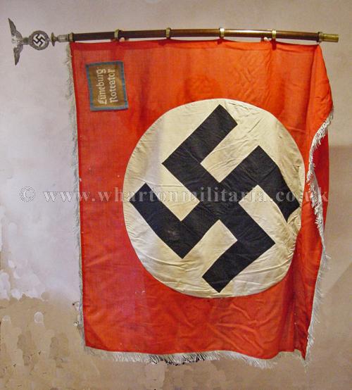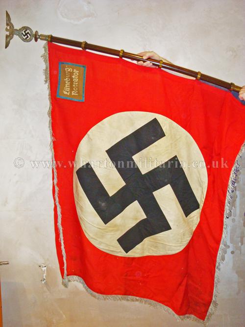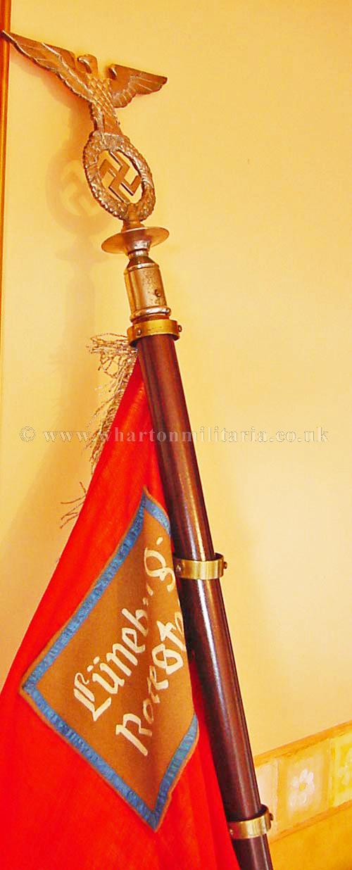 A scarce SA/SS Standard and pole to the area 'Luneburg Roteston'. Excellent overall condition, though has suffered some moth nips to the lower section of the cloth, standard retaining its pole eagle and both poles, crisp of colour and a stunning 'been there' display and collection centre piece. Such iconic standards are now very difficult to find especially at realistic prices.