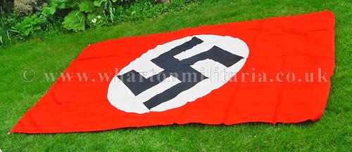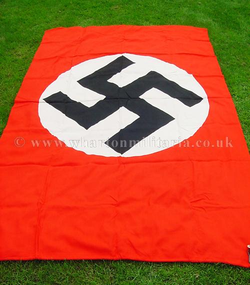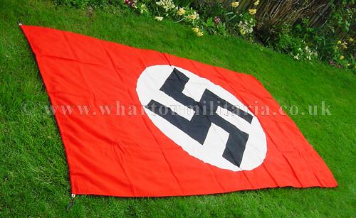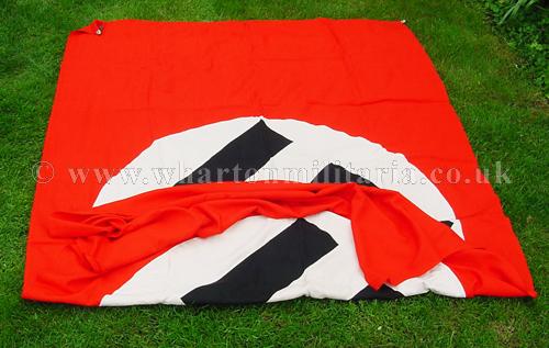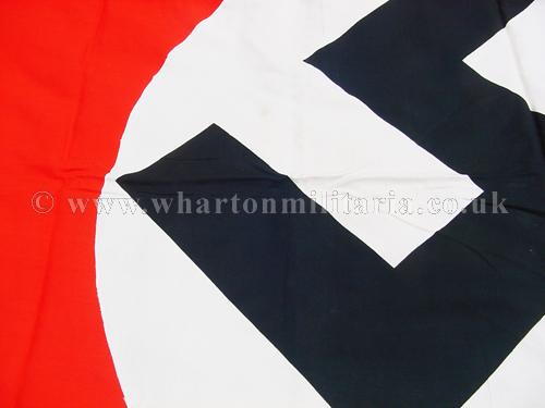 A scarce large Kriegsmarine flag in excellent clean condition, approx size is 140 x 240 cms, nice early heavy material still retaining its metal fittings, multi-piece construction, no Kriegsmarine issue stamp. Flag has a couple of small moth nips on one of the swastika arms otherwise in near unissued condition. Beautiful flag that is difficult to find these days.