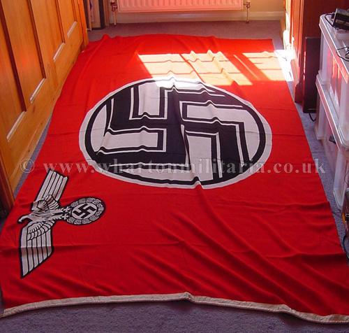 WW2 German Kriegsmarine War Service flag, showing the swastika and eagle insignia. Very large 135 x 240 cm. Lovely condition flag without any damage or holes, not maker or size marked.